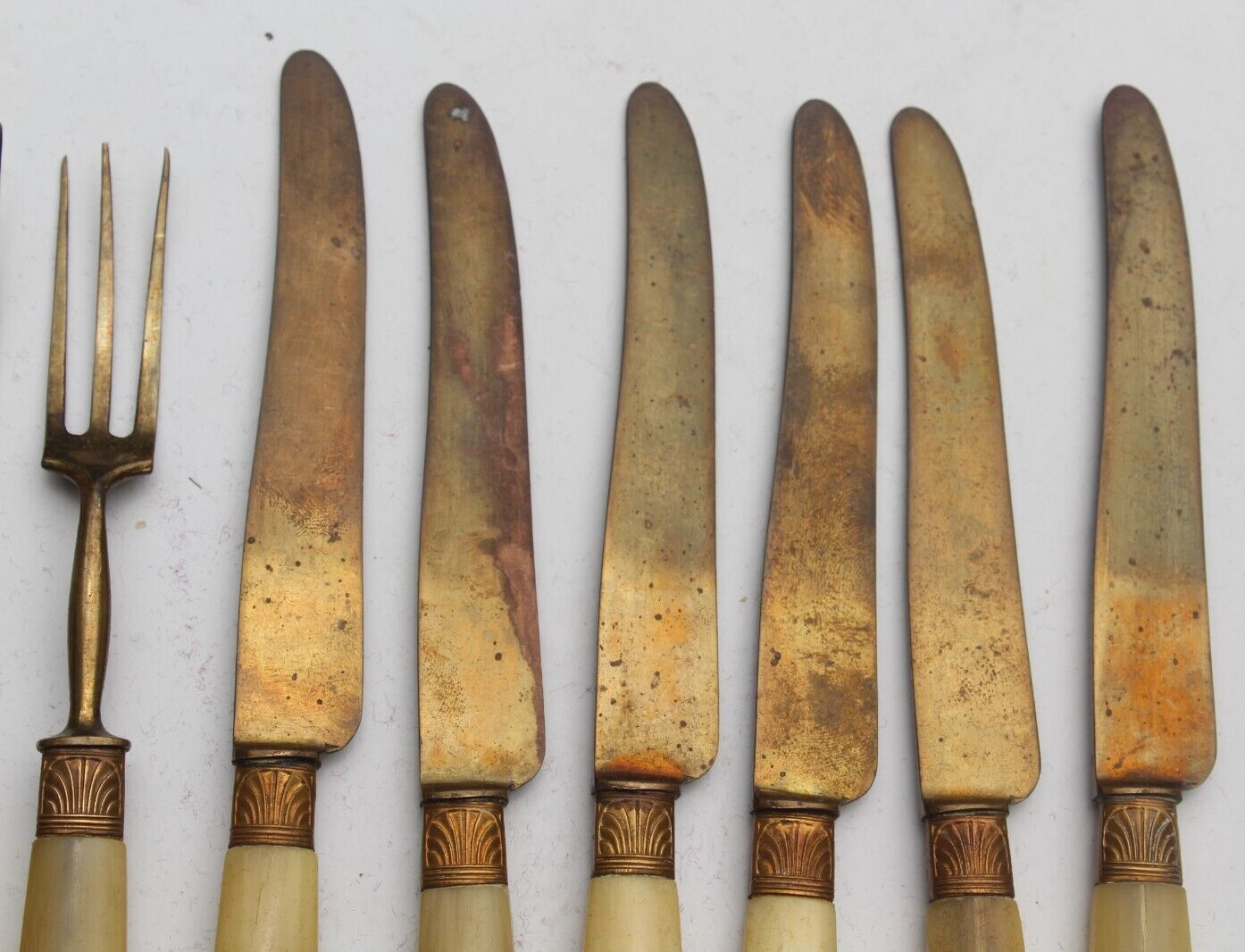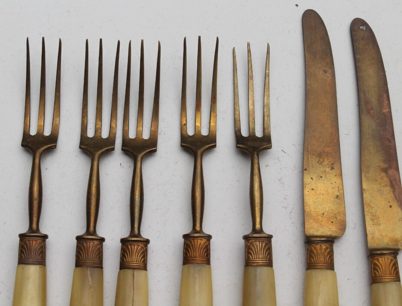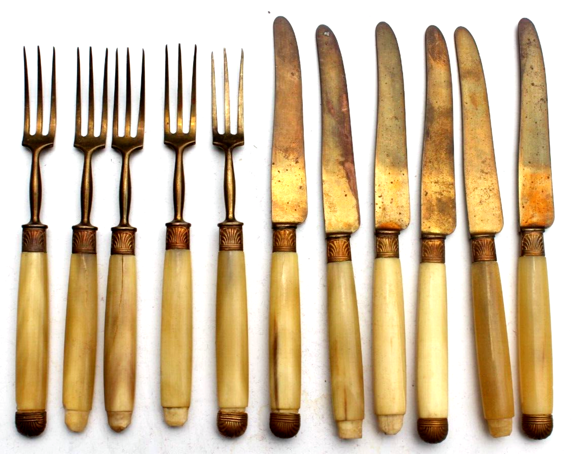 Antique 1800s Victorian Bone Fork & Knife Set Utensils Silverware