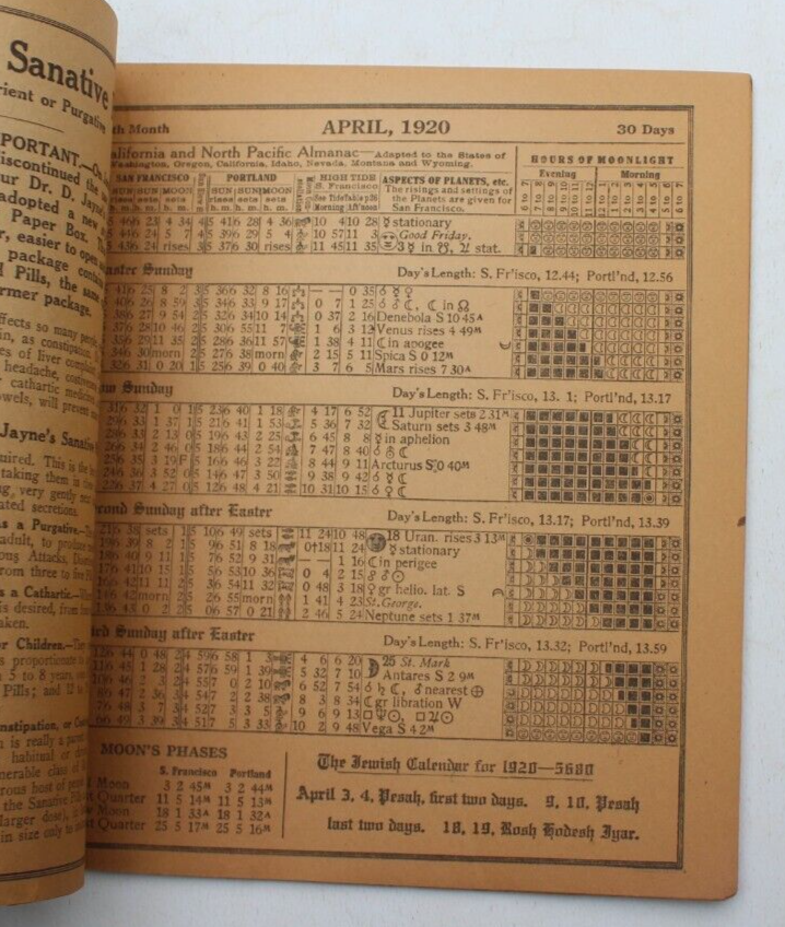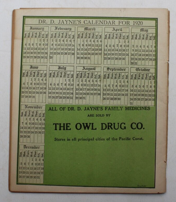 Antique Dr. D. Jayne's 1920 Medical Almanac and Guide to Health Booklet Magazine
