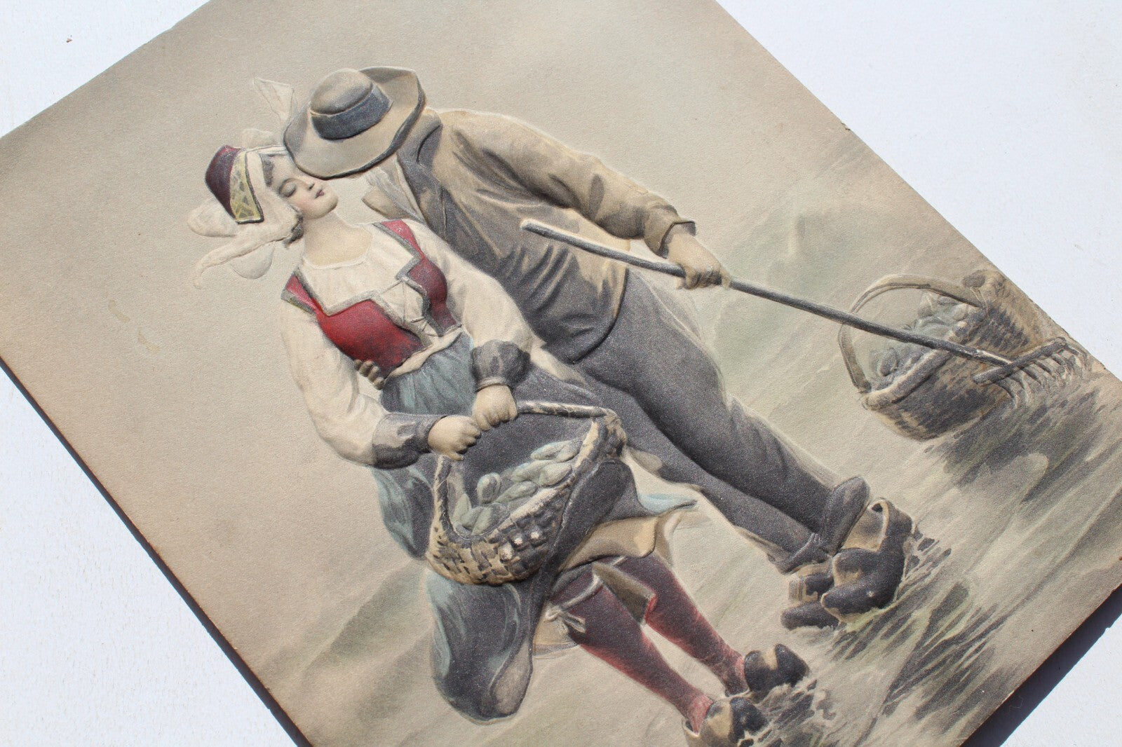 Antique Dutch Man & Woman Alfred S. Campbell Art Relievo 3-Dimen Embossed Photo