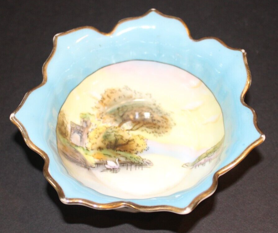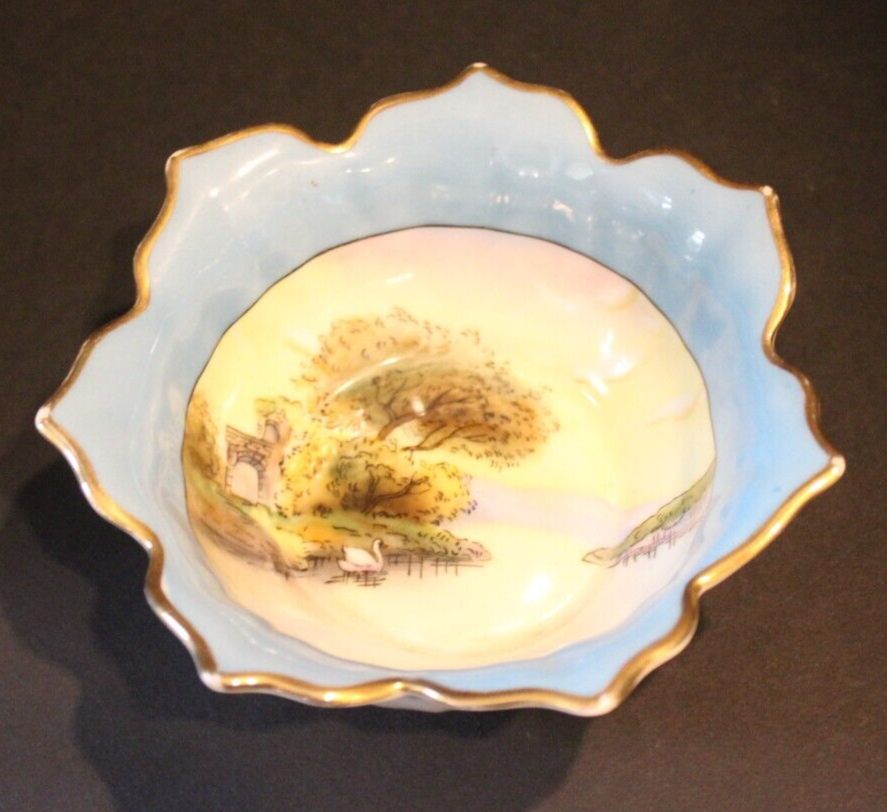 Antique Noritake SWAN IN LAKE Mini Bowl Hand Painted Dish Made in Japan
