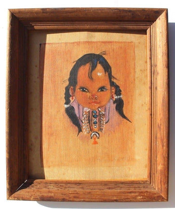 Antique Vintage 1900's Native American Indian Girl Signed Painting 8X10