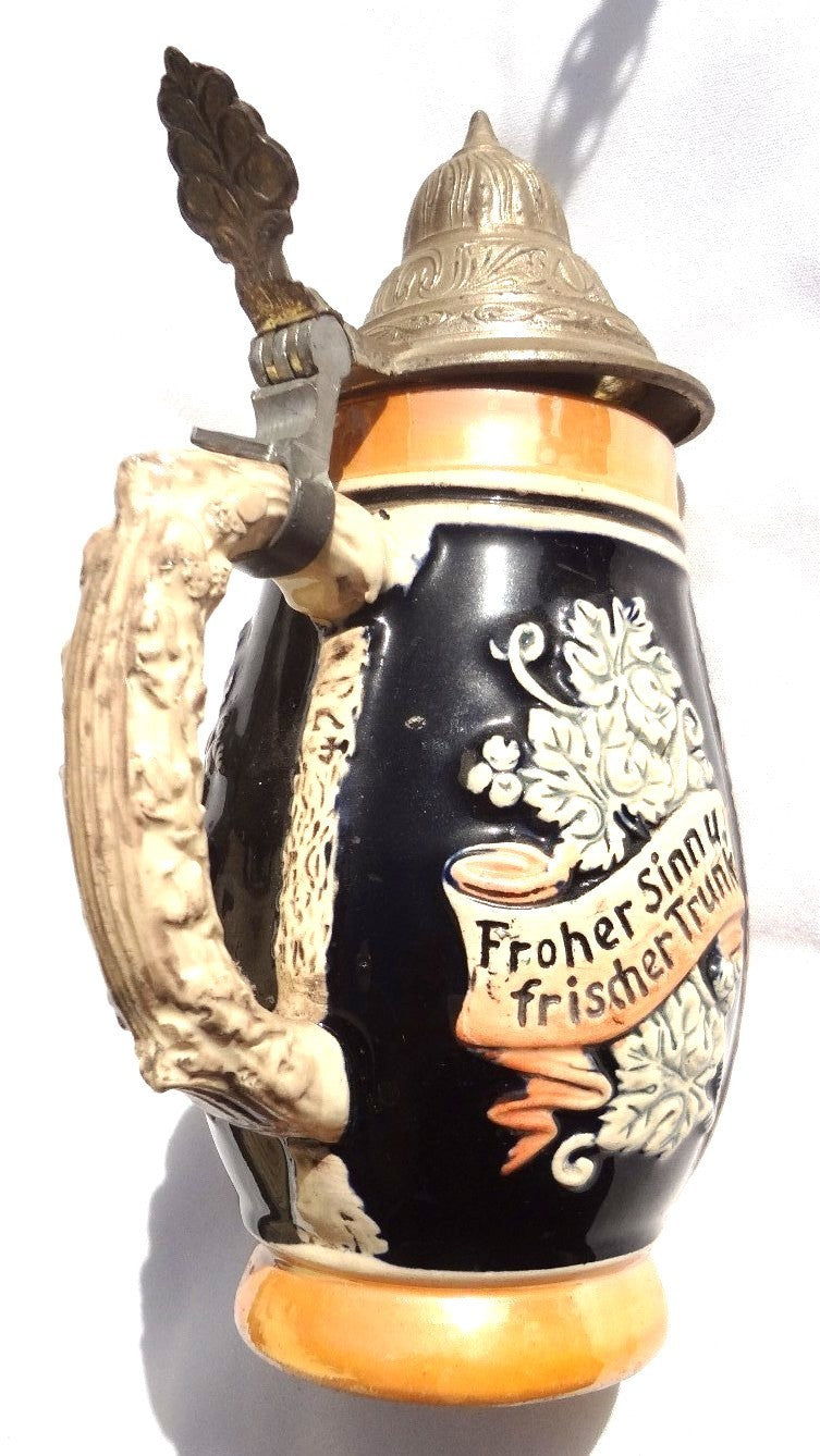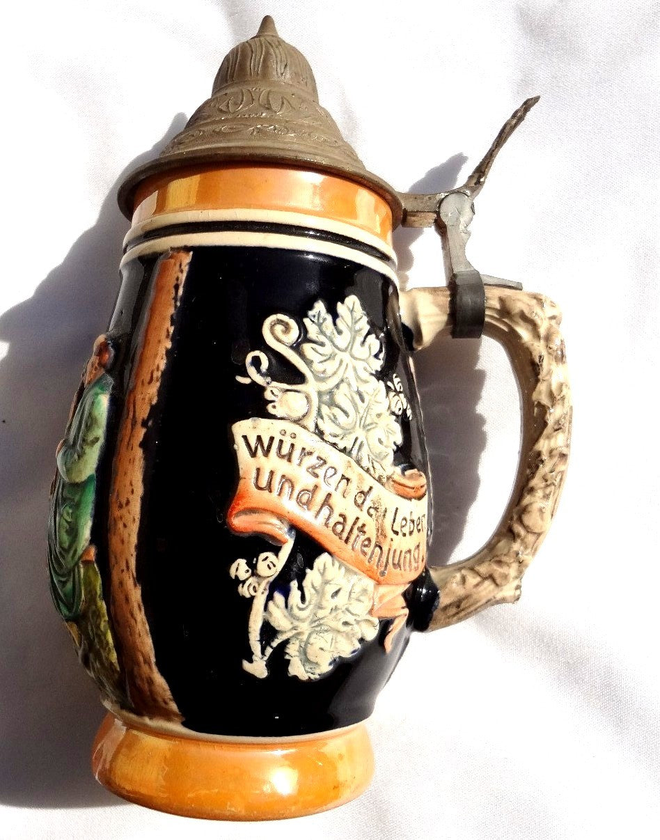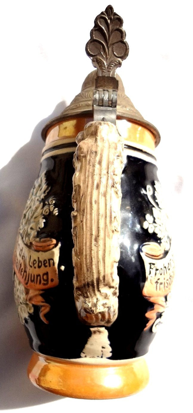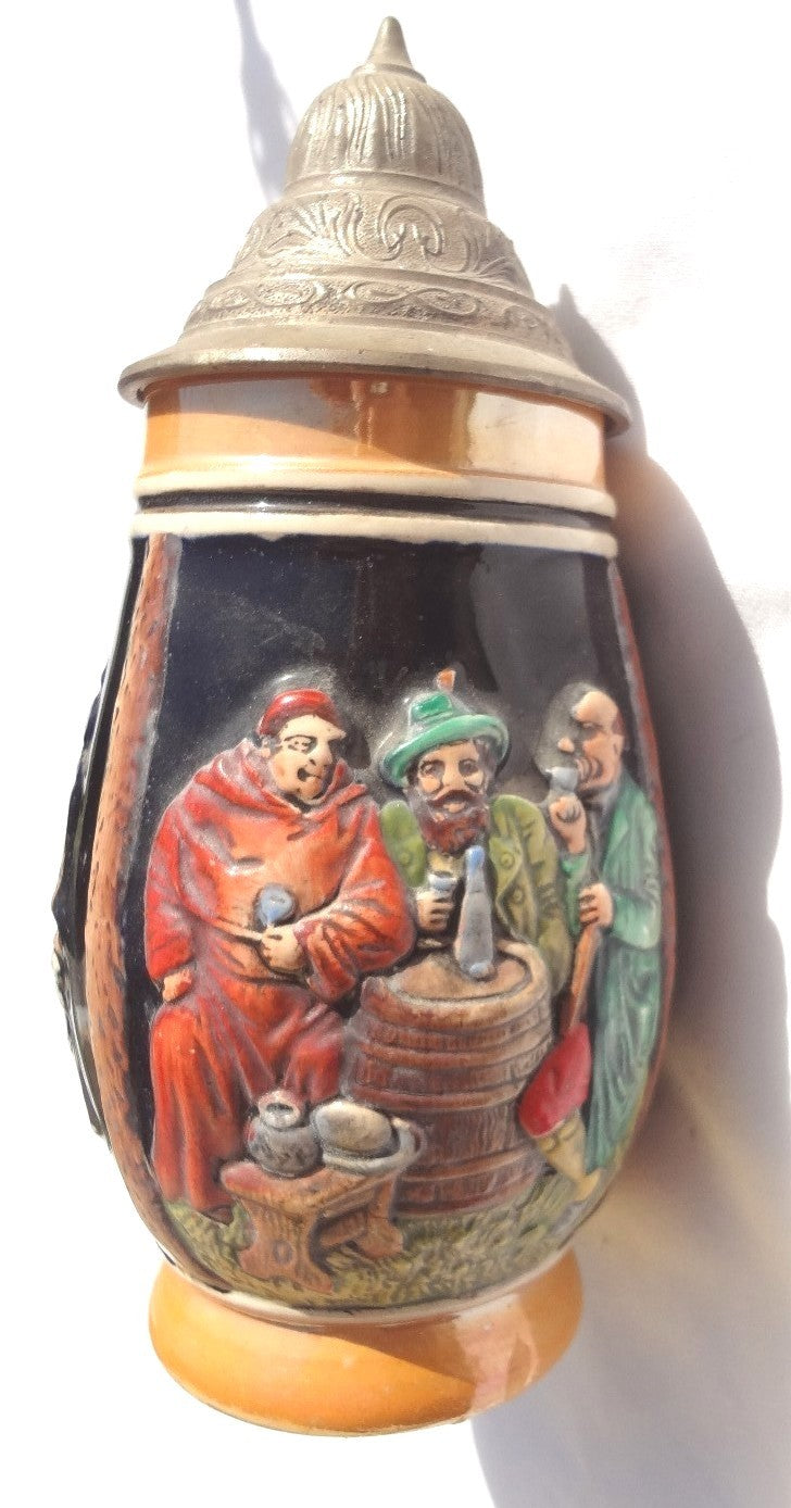 Antique Vintage German Style Ceramic Lidded Beer Stein Mug 3 Men