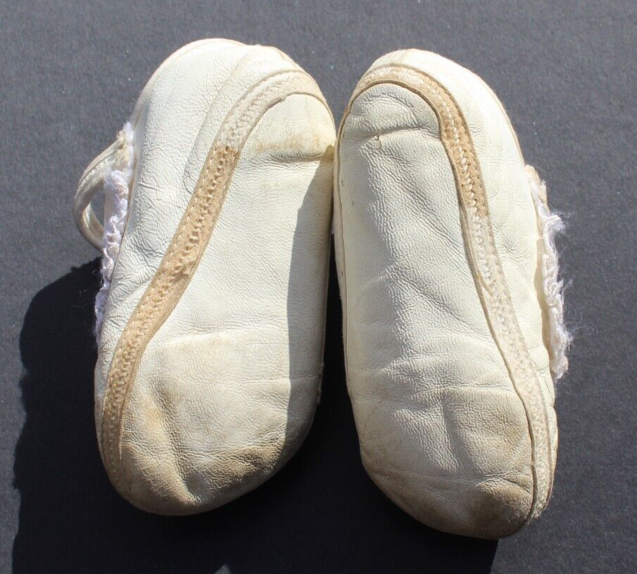 Antique VINTAGE White Leather Baby Snap Top Doll Baby Babies Shoes W/ Lace