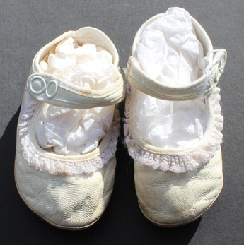 Antique VINTAGE White Leather Baby Snap Top Doll Baby Shoes W/ Lace