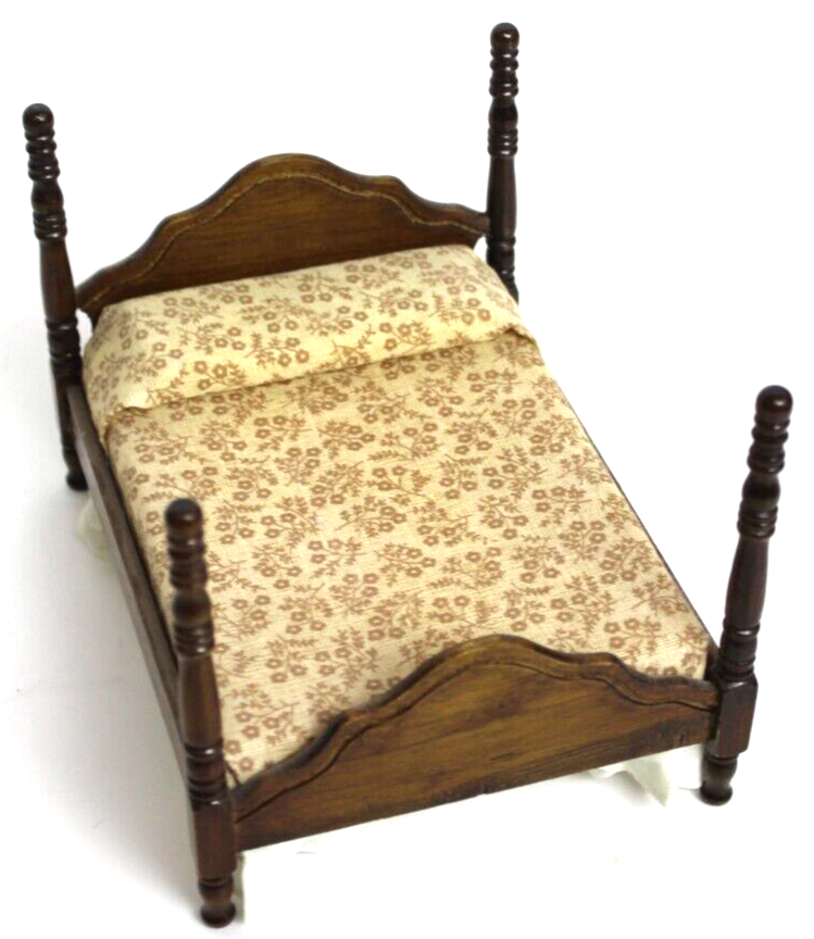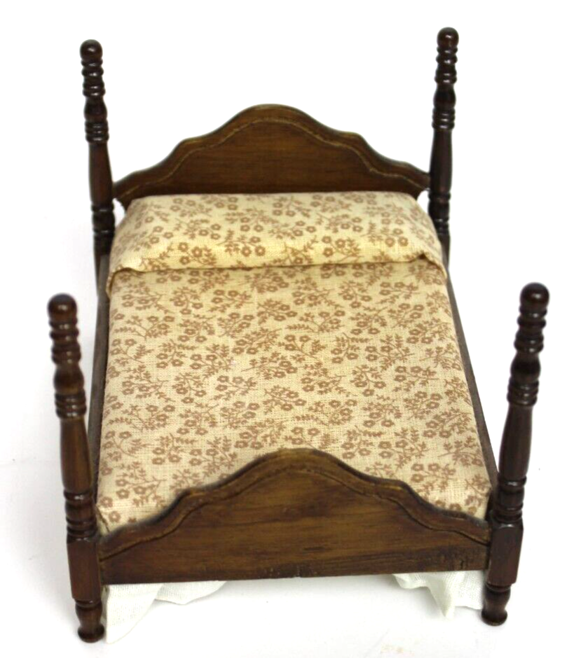 Antique Vtg Dark Wood Victorian Dollhouse Furniture French Colonia Bed Frame