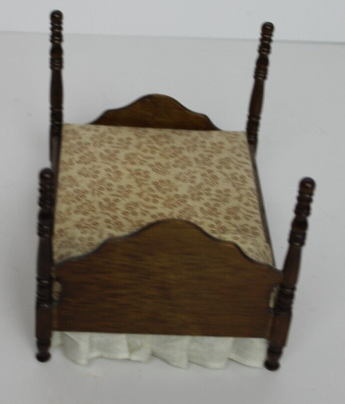 Antique Vtg Dark Wood Victorian Dollhouse Furniture French Colonial Bed Frame