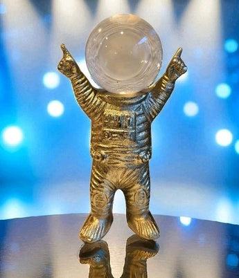 New Retro Pop Art Gold Glass Ball Head Astronaut On the Moon Figurine Room Decor